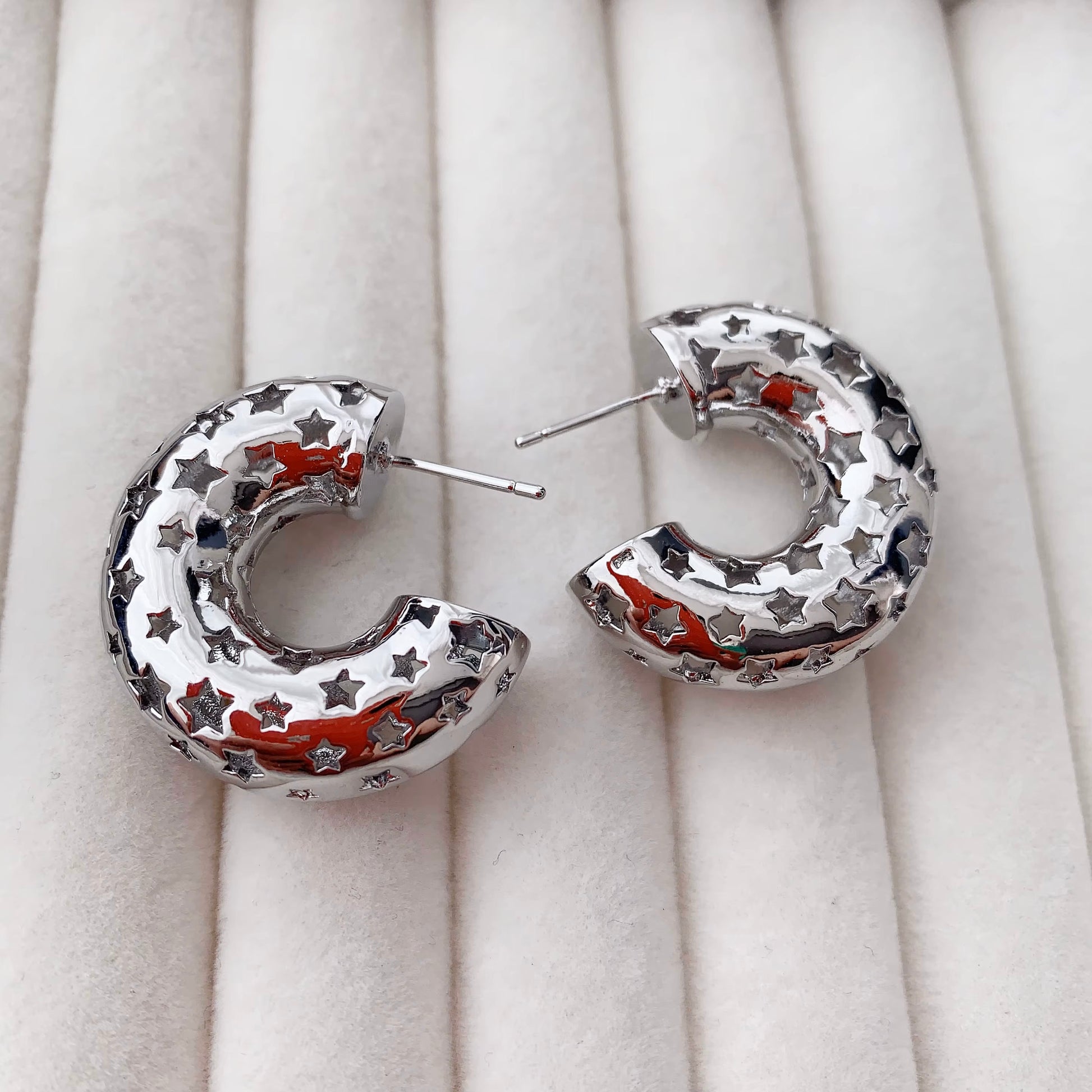Shine like the icon you are with the Starstruck Hoops—bold, puffy earrings decked in metallic stars and celestial vibes. Available in gold and silver, these hoops deliver maximum sparkle and vintage-inspired attitude.